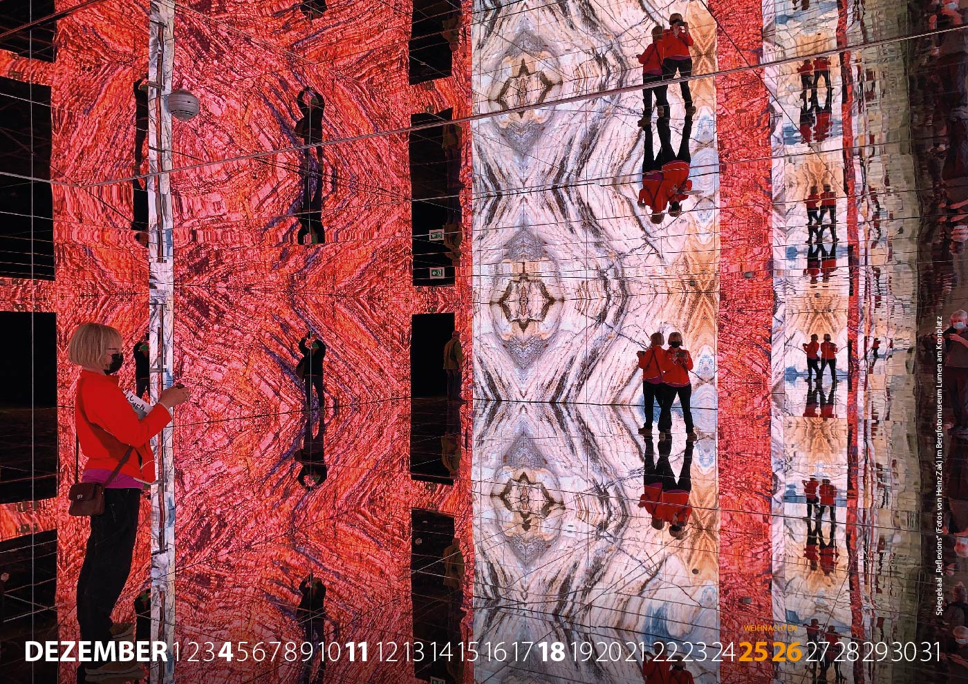 Ein großer Fotokalender im DIN-A2-Querformat mit Fotos einer Wanderreise im September 2021 nach Rein in Taufers in Südtirol. Zum Schluss noch ein Foto aus dem Spiegelsaal im Bergfotomuseum Lumen auf dem Kronplatz (bei Bruneck) mit der beeindruckenden Show „Reflexions“ mit Fotos von Heinz Zak.